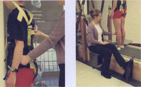 таз и бедра вперед и перемещает вес пациента на другую ногу. a. Тянет назад за заднюю лямку жилетки упряжи.