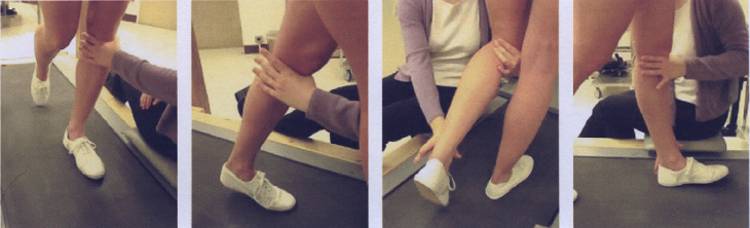 c. надавливают на медиальное подколенное сухожилие (непосредственно за коленом),