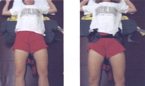 Тазовый ремень одевается первым. Размещение его должно быть симметричным,