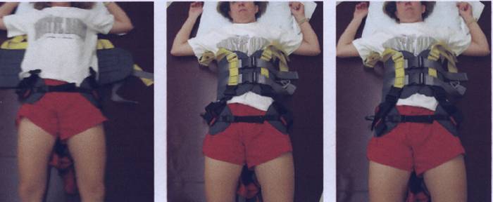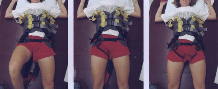- в положении лежа на столе или коврике. Расположите жилетку и тазовый ремень