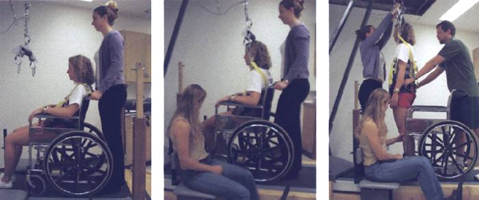 в позицию шага назад. Инструкторы постоянно дают команды пациенту и помогают,