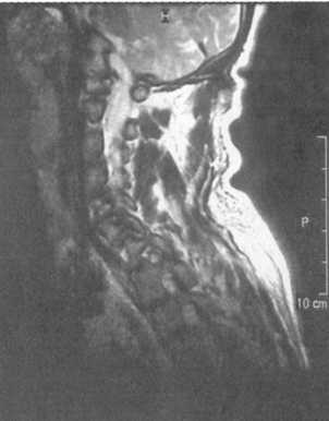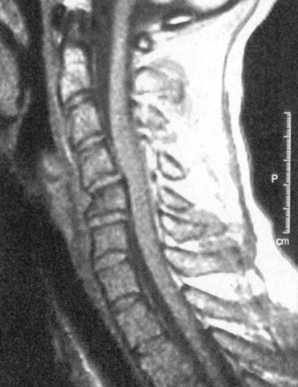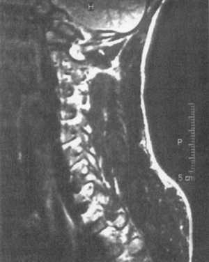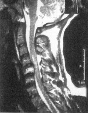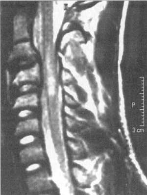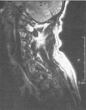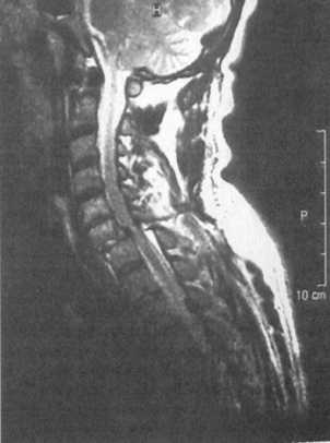 Рис. 2.9. Вывих С4-С5, позвонков с зоной ишемии спинного мозга